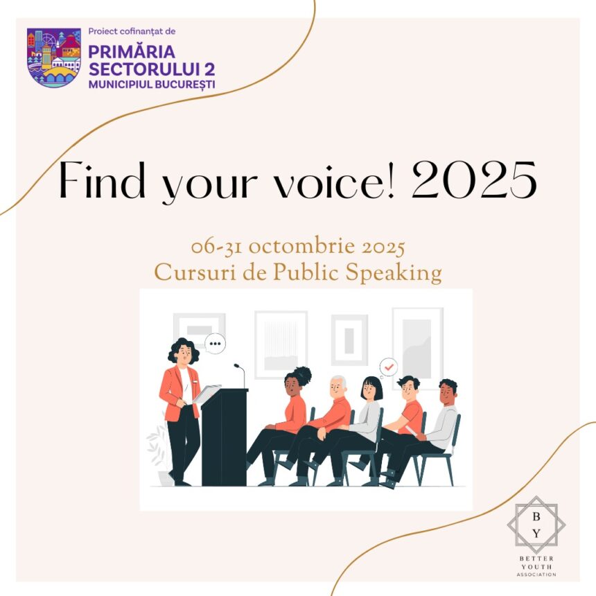 Proiectul „Find Your Voice 2025” organizat de Asociația Better Youth în perioada 06-31 octombrie 2025 și cofinanțat de Primăria Sectorului 2 a ajuns la final.