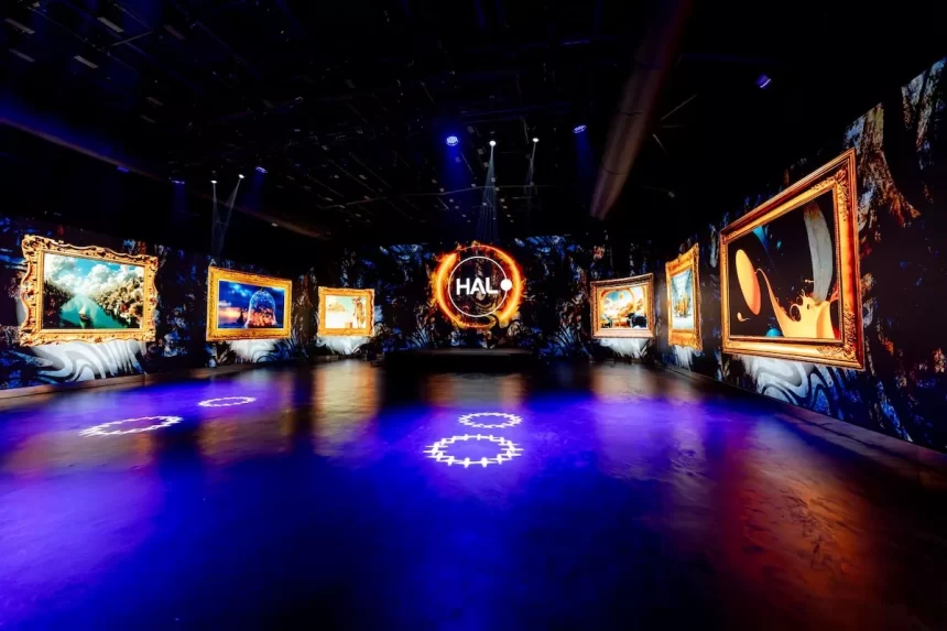 HALO Events, din incinta Romexpo București, este cel mai mare spațiu de evenimente din Europa echipat cu LED panoramic 360°, o instalație continuă de 90 metri desfășurați, care oferă un nivel de imersiune vizuală fără precedent.